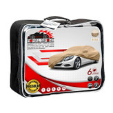 اگر خودرو شما به صورت مداوم در معرض نور آفتاب و شرایط بد آب و هوایی مانند برف و باران باشد، این امر منجر به آفتاب سوختگی رنگ خودروها و یا زنگ زدگی بدنه می شود. این آسیب در خودروهای با رنگ تیره در آفتاب بیشتر است. چون رنگ تیره جاذب انرژی است. از طرف دیگر ضرر آفتاب، برای الیاف پارچه ای روکش صندلی خودروها یا روکش های چرمی آن ها نیز آسیب زاست و می تواند عمر آن ها را تا حد زیادی کاهش دهد. علاوه بر این در سایر فصل ها نیز چادر خودرو می تواند، خودرو را از گرد و غبار و بارش باران محافظت کند. روکش این نوع چادرهای نسل جدید از جنس نانو و قسمت زیرین لایه ضد خش پشت کرک هستند، برای در امان ماندن از مضرات تابش آفتاب، باید توجه داشته باشید که تا حد امکان از فضاهای سرپوشیده برای پارک خودرو استفاده کنید. با این حال، هم اینک این نوع چادرهای خودرو موسوم به نانو در اختیار خریداران عزیز قرار دارد که بسته به انواع سایز خودرو ها موجود می باشد. این نوع چادر های خودرو دارای خاصیت های ضد آب، ضد خش، ضد آفتاب و شست و شوی آسان هستند. در واقع یک چادر ضدآب خودرو برای آنهایی که نگهداری و حفظ ظاهر خودرو برایشان اهمیت دارد، ضروری است. چادر ضدآب خودرو یک راه ساده و موثر برای حفاظت بدنه ی خودرو در برابر خط و خش و تغییر رنگ است. چادر ضد آب خودرو از یک لایه ی مخصوص بهره می برد که مقاوت آن در برابر نفوذ آب را تا حد زیادی بالا برده است. لایه ی درونی چادر ضدآب خودرو از جنس نرم ساخته شده است تا از بروز آسیب های سطحی توسط چادر جلوگیری شود. علاوه بر این یکی دیگر از مزایای چادر ماشین ضد آب این است که میتواند ما را از هزینه هایی که برای کارواش پرداخت میکنیم تا همیشه اتومبیل تمیزی داشته باشیم این چادر خودرو به سفارش برند رویال اسپرت تولید شده، در رده بندی کیفیت +GRADE A و به همراه یک پرده پارک ضد اشعه آفتابگیر که در بسته بندی قرار گرفته ارائه می شود.